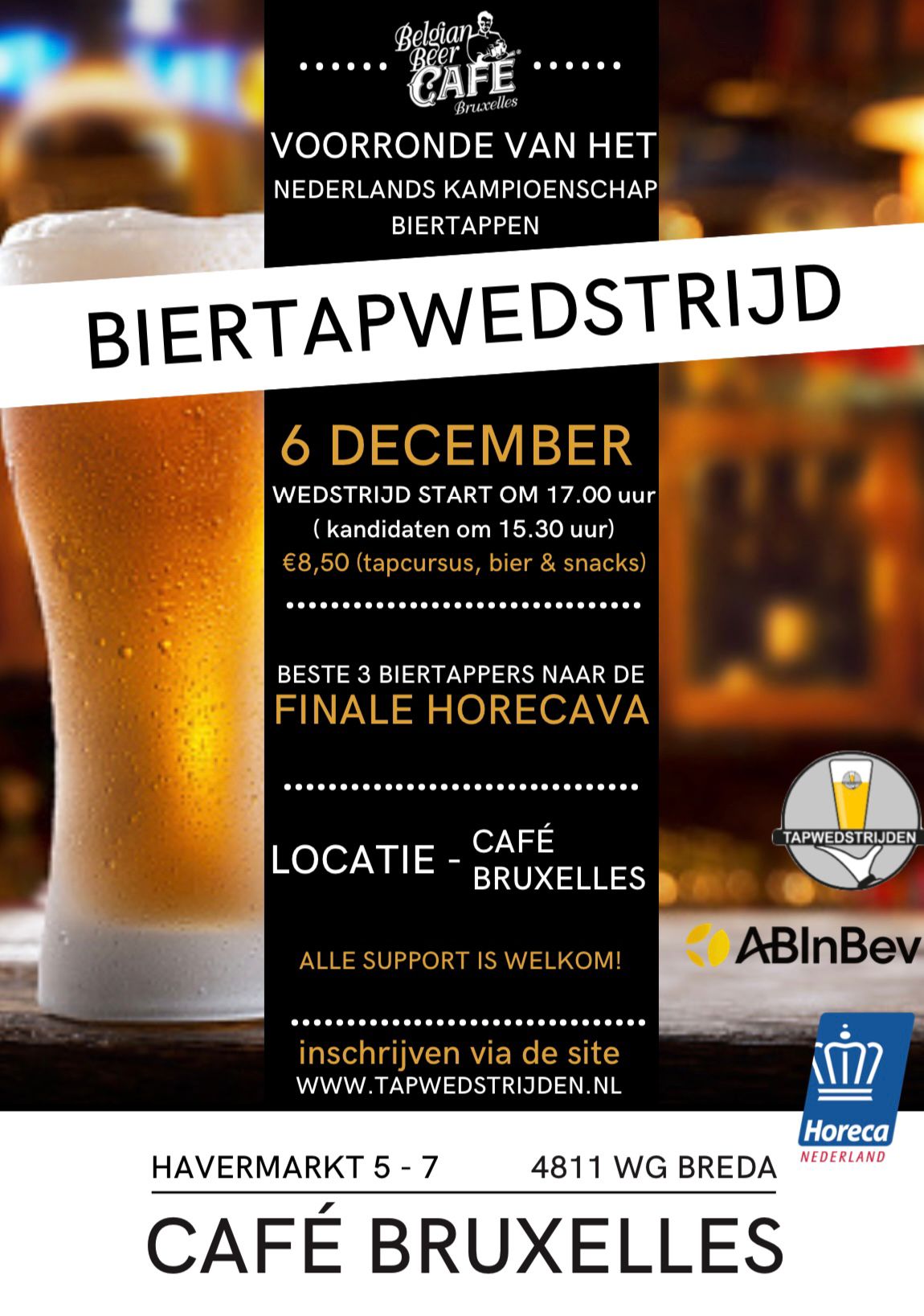 Hallo mensen! Binnenkort komt het Nederlands tapkampioenschap weer voorbij. Voor dat kampioenschap zijn er regionale voorrondes waarbij die van ons in Bruxelles gehouden wordt! Voel je je dus geroepen om mee te doen aan deze wedstrijd, meld je dan aan bij mij en misschien maak je wel kans om in de finale terecht te komen op de horeca beurs 'Horecava' in januari in Amsterdam!